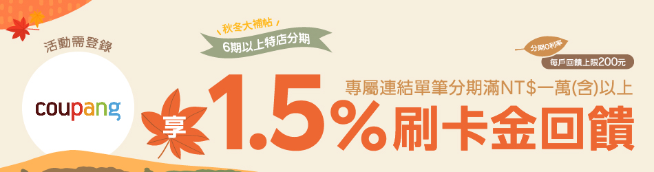 信用卡循環信用年利率:6.75%-15% (基準日:2015年9月1日) 預借現金手續費:每筆預借現金金額X3.5%+NT150