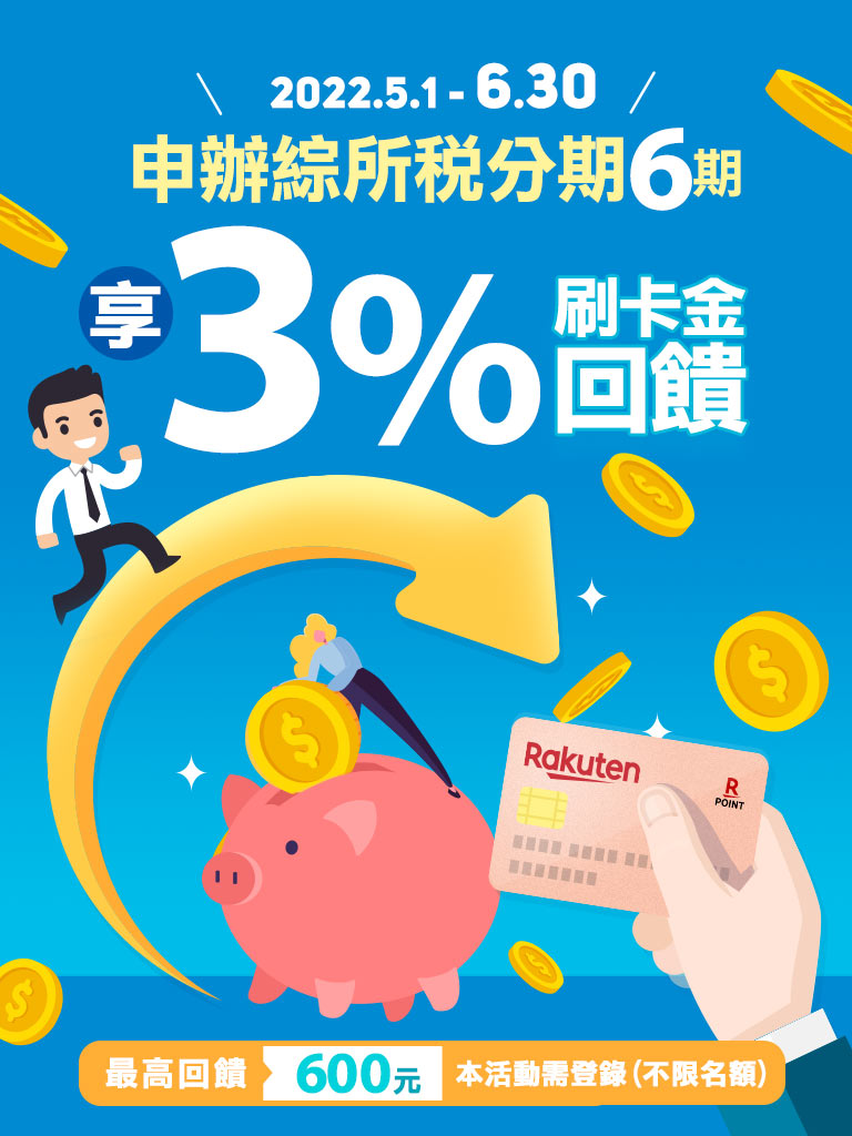 *活動期間內登錄並成功申辦綜所稅分期6期,享成功分期金額3%回饋!最高回饋600元!