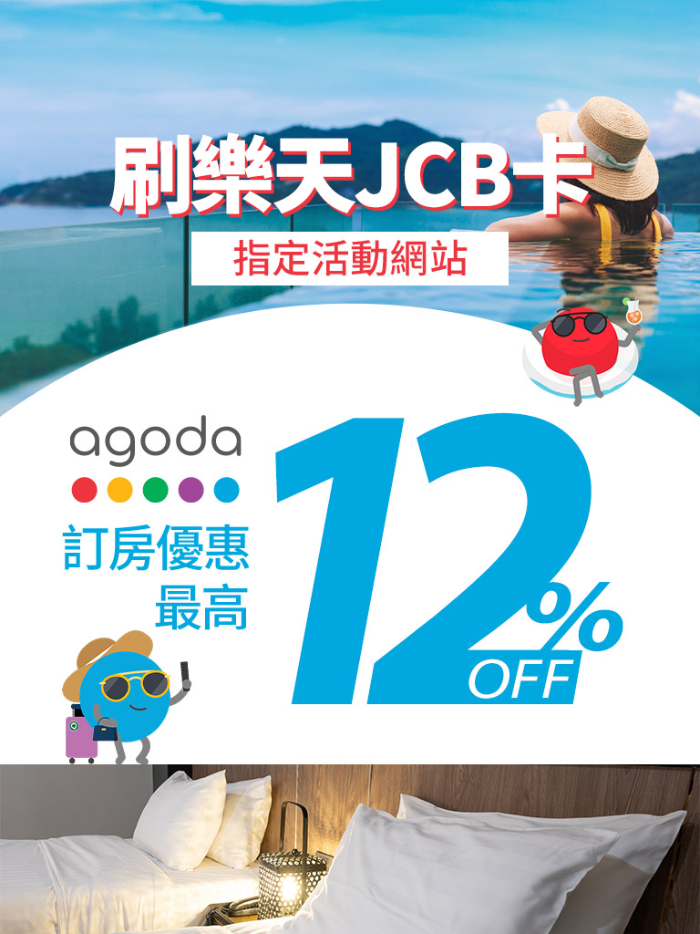 *至agoda專屬網站使用台灣樂天JCB信用卡預約飯店訂房享最高12%OFF 。