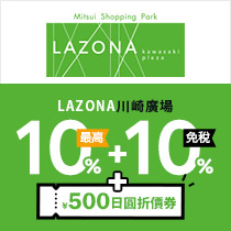 LAZONA川崎廣場送優惠券及500日圓購物折價券!